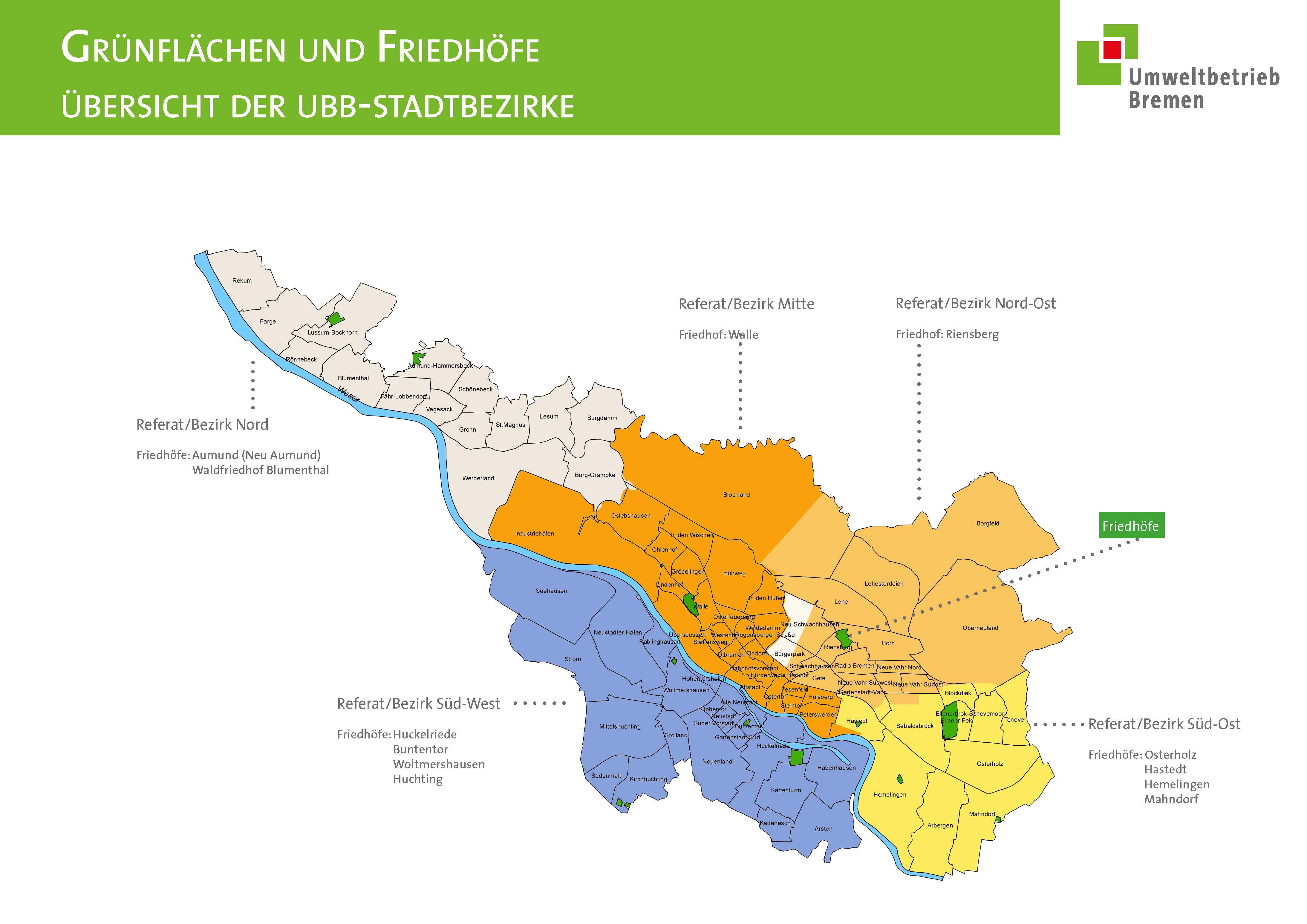 Karte der Pflegebezirke des Umweltbetrieb Bremens