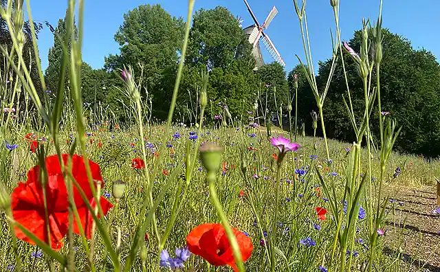 Gönnen Sie sich eine kleine Auszeit in den Wallanlagen. Das bunte Durcheinander aus Wildblumen vor der Wallmühle sorgt in diesem Jahr für ein duftendes Sommerfeeling.