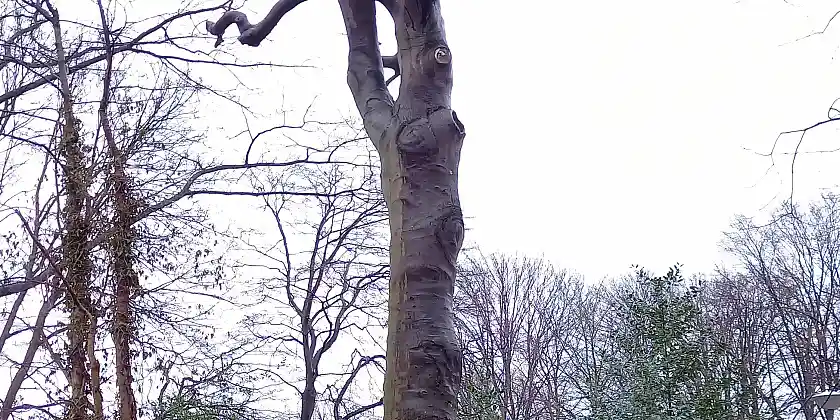 Zwei Hohlräume birgt der Stamm der 210 Jahre alten Fagus sylvatica. Das fördert neben der Fäule und einem Pilz nicht gerade die Lebenserwartung des Baumes. Die Höhlen haben aber auch Raum zum Leben gegeben. „Die wurden von Waldkäuzen und Fledermäusen genutzt“, weiß Gärtnermeister Matthias Semela. Daher hat er ein Artenschutzgutachten beauftragt. Das Gutachten kann zwar keine aktuelle Behausung von Waldkäuzen oder Fledermäusen mehr aufzeigen, es gibt aber durchaus noch Spuren von Ameisen, Käfern und Wildbienen. Um den Baum nicht fällen zu müssen, wurde die Kronenlast vermindert und einige Äste geschnitten. So bleibt die Standsicherheit erhalten – und die Hoffnung, dass die Insekten übersiedeln.