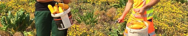 Vor der Wallmühle sprießt das Gemüse für einen guten Zweck. Am heutigen heißen 8. August ernteten die Gärtnerinnen und Gärtner vom Umweltbetrieb Bremen gemeinsam mit den Bremer Suppenengeln das Gemüse, das im Frühjahr vor der Wallmühle angebaut wurde. Die Köche der Bremer Suppenengel werden daraus eine köstliche Suppe zaubern. Im Frühjahr 2018 hat der Umweltbetrieb Bremen neben 20.000 Tagetes und 5000 Ringelblumen auch zahlreiche Mangold- und Zucchinipflanzen in das Beet gesetzt. Jetzt freuen wir uns, den Ertrag an die Hilfsorganisation weitergeben zu können, die Tag für Tag Bedürftige mit Essen versorgen- übrigens auch beim Kastanienwäldchen, direkt gegenüber dem Beet vor der Wallmühle.